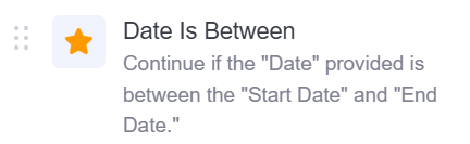 This operator checks if the given date falls within the specified range defined by two reference dates. It returns true if the specified date falls within the range or exactly matches the Start Date and End Date; and false otherwise.