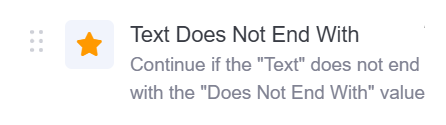 This operator checks if the reference text does not end with the specified text.If the reference text does not end with the specified text, it returns true, else false.