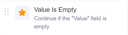 - Value: The field to check whether it is empty. If this field is empty, it returns true and proceeds.