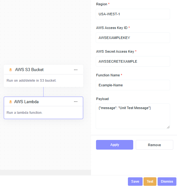 - AWS Access Key ID: AWSEXAMPLEKEY