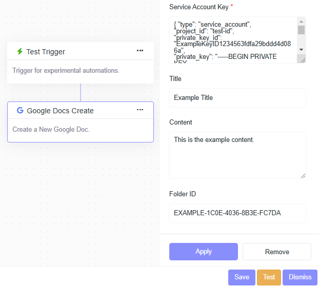 - Content: This is the example content.