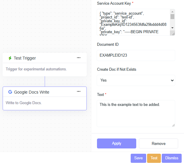- Text: This is the example text to be added.