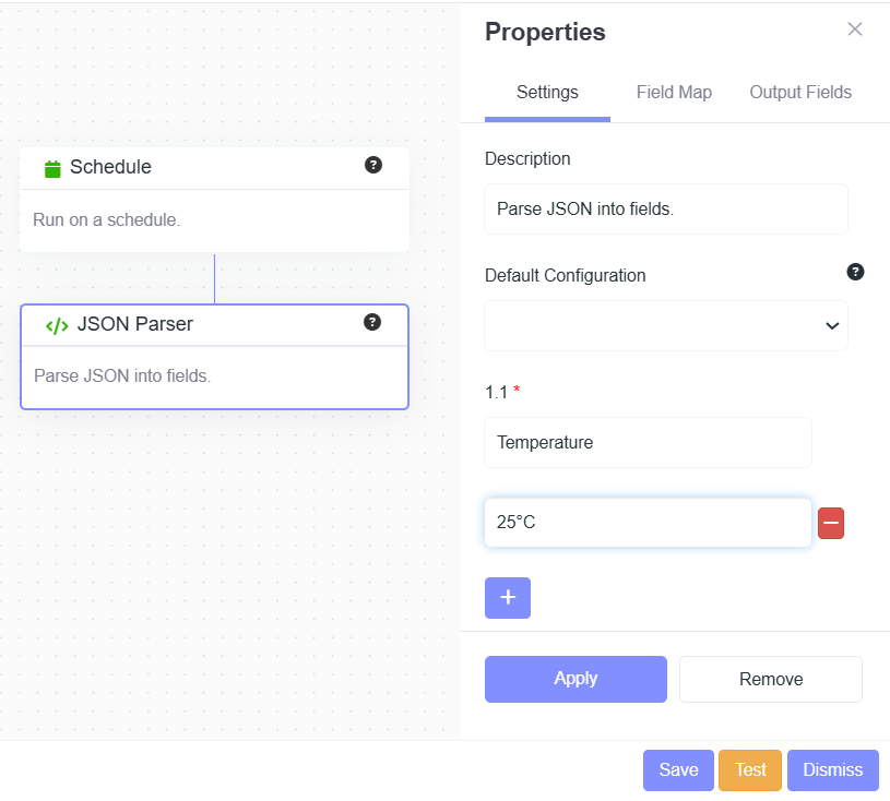 - Description: Parse JSON into fields.