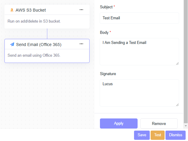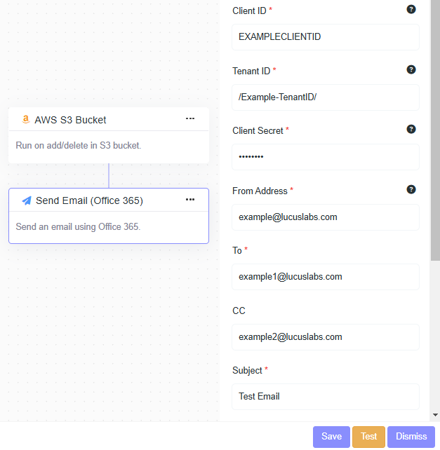- Description: Send an email using Office 365.