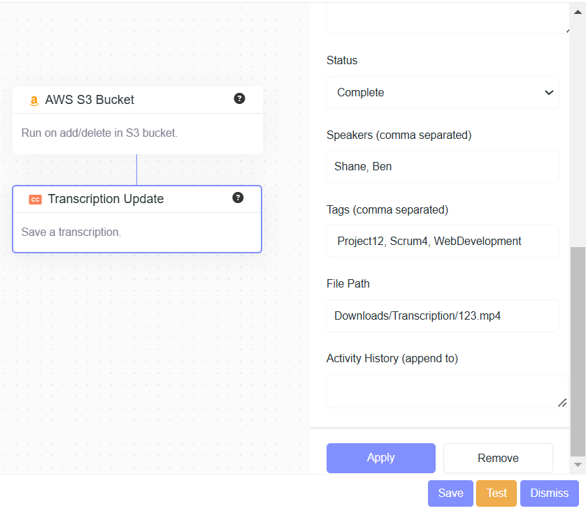 - Description: Append to a transcription history.