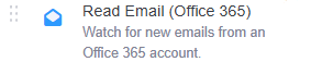 - Read Email (Office 365) - Activate when an email arrives at the specified Office 365 inbox.