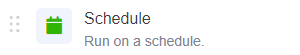 The Schedule operator activates the Automation flow at a specific date and time. The schedule can be set to repeat at regular intervals such as hourly or weekly. The time provided will be based on the GMT timezone.